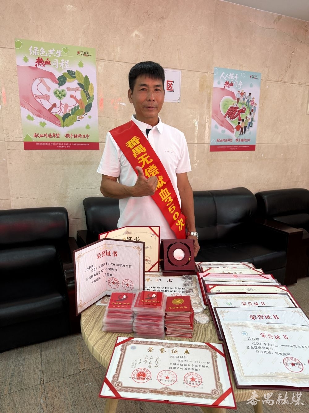 仪式现场,当冯日初接过奖牌和鲜花时,脸上露出了朴实的笑容。他表示,只要身体条件允许,他会一直将无偿献血坚持下去,“只要有人需要,我就会一直在献血的路上。”简单的话语,却饱含着对生命的敬畏与对社会的担当,这就是冯日初,一个用22年热血书写大爱人生的普通人,一个用实际行动诠释“奉献”二字的“献血榜样”。