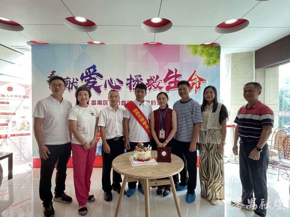 番禺区中心血站感谢冯日初22年来对无偿献血事业的支持